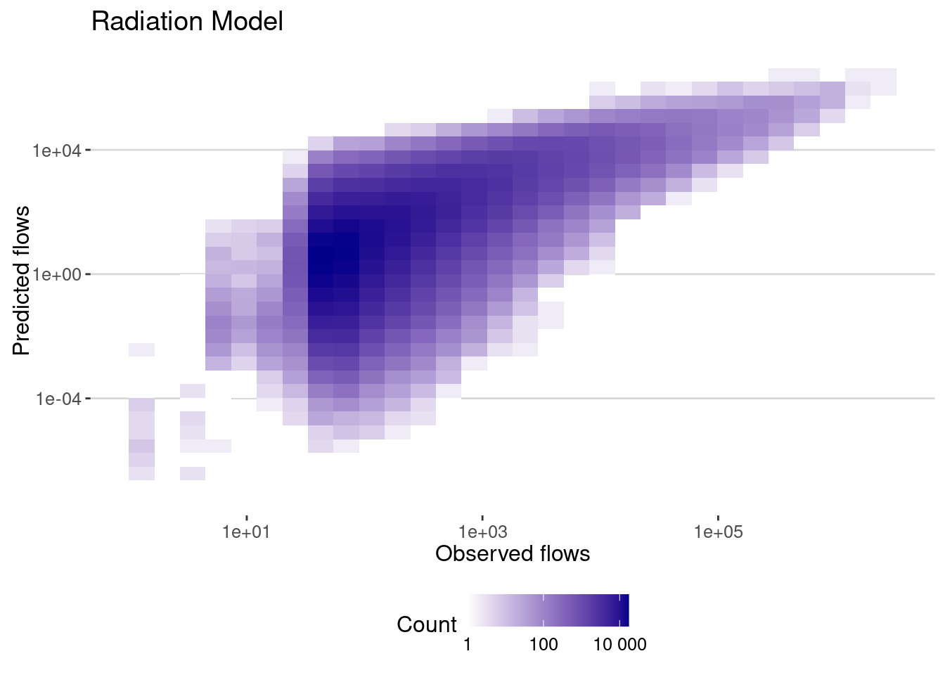 labs(title="Radiation Model",x="Observed flows",y="Predicted flows")
