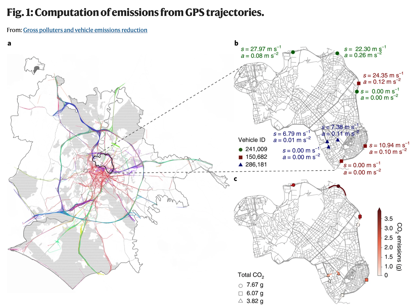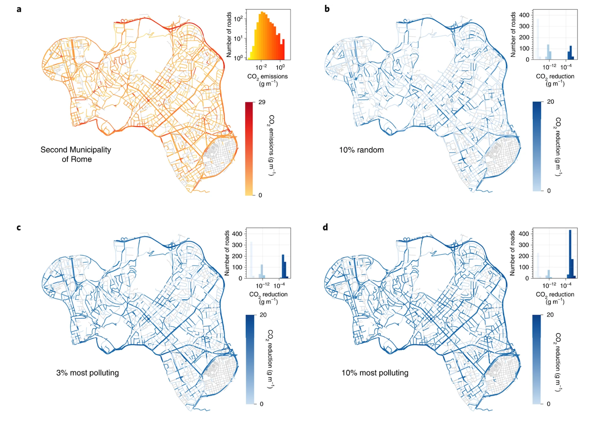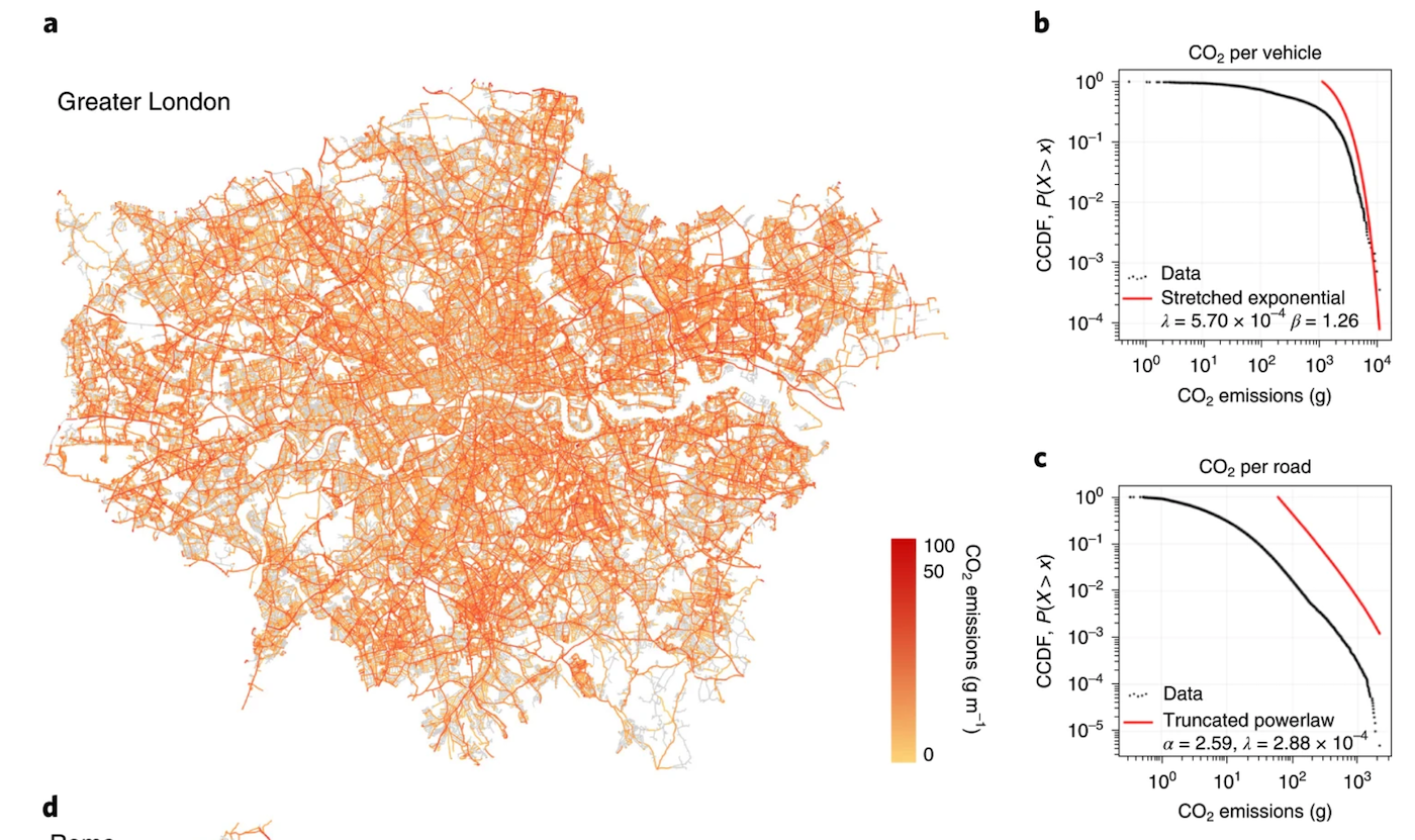 Distribution of emissions by car and street, from [1]