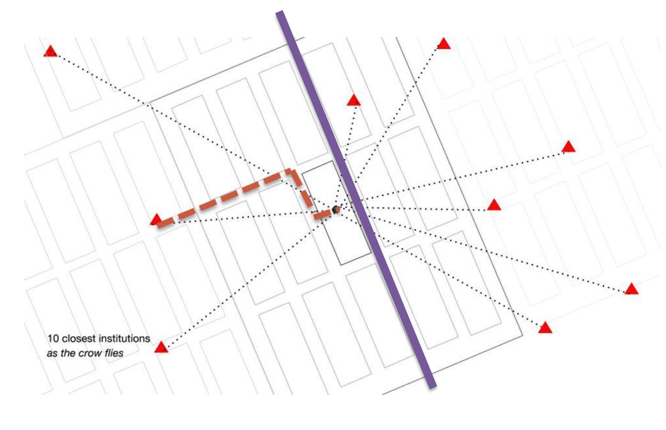 Accessibility to financial institutions from a given block, from [4]