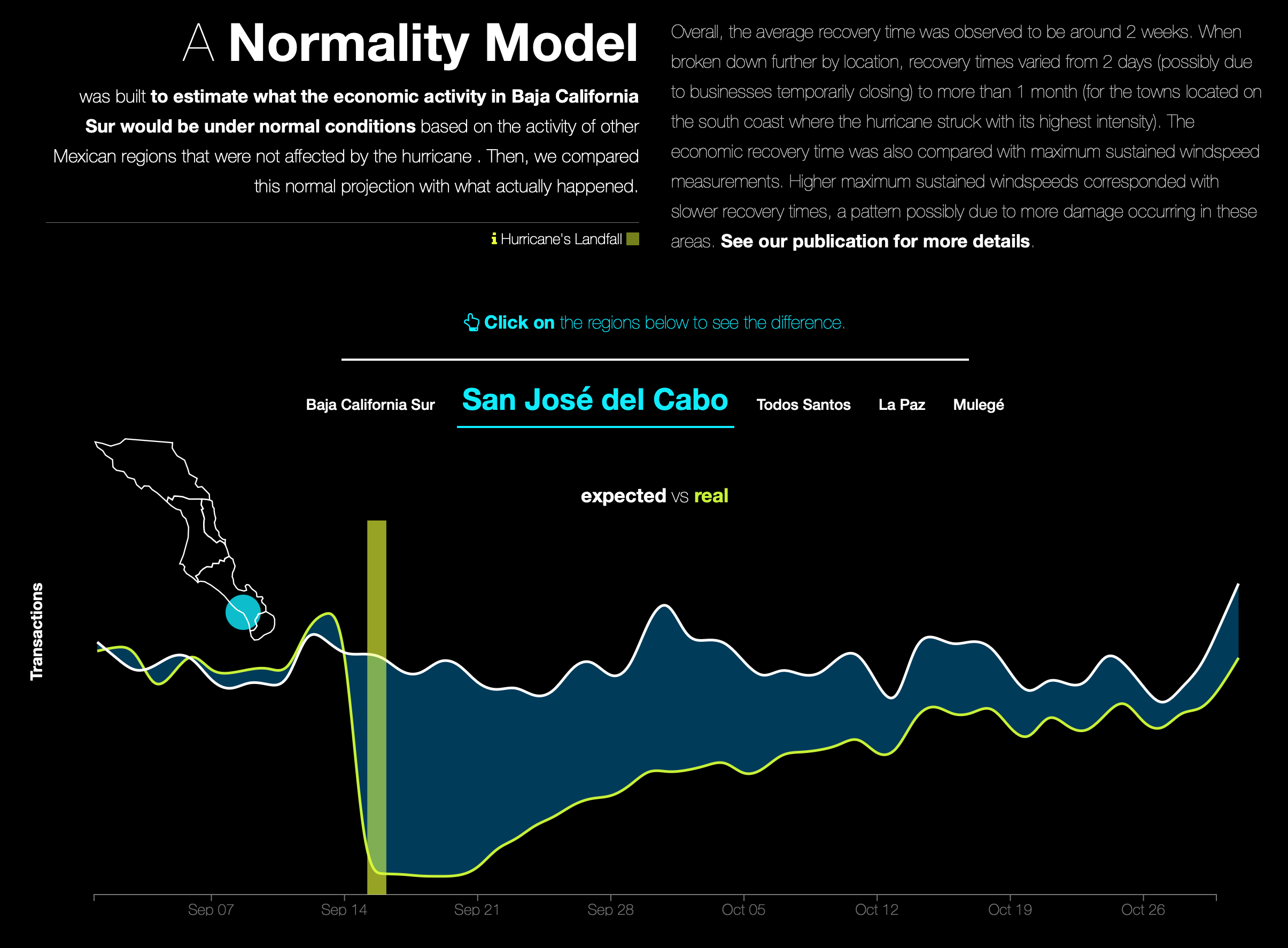 Using credit card transactions in Mexico to investigate the resilience of communities to hurricanes [13]