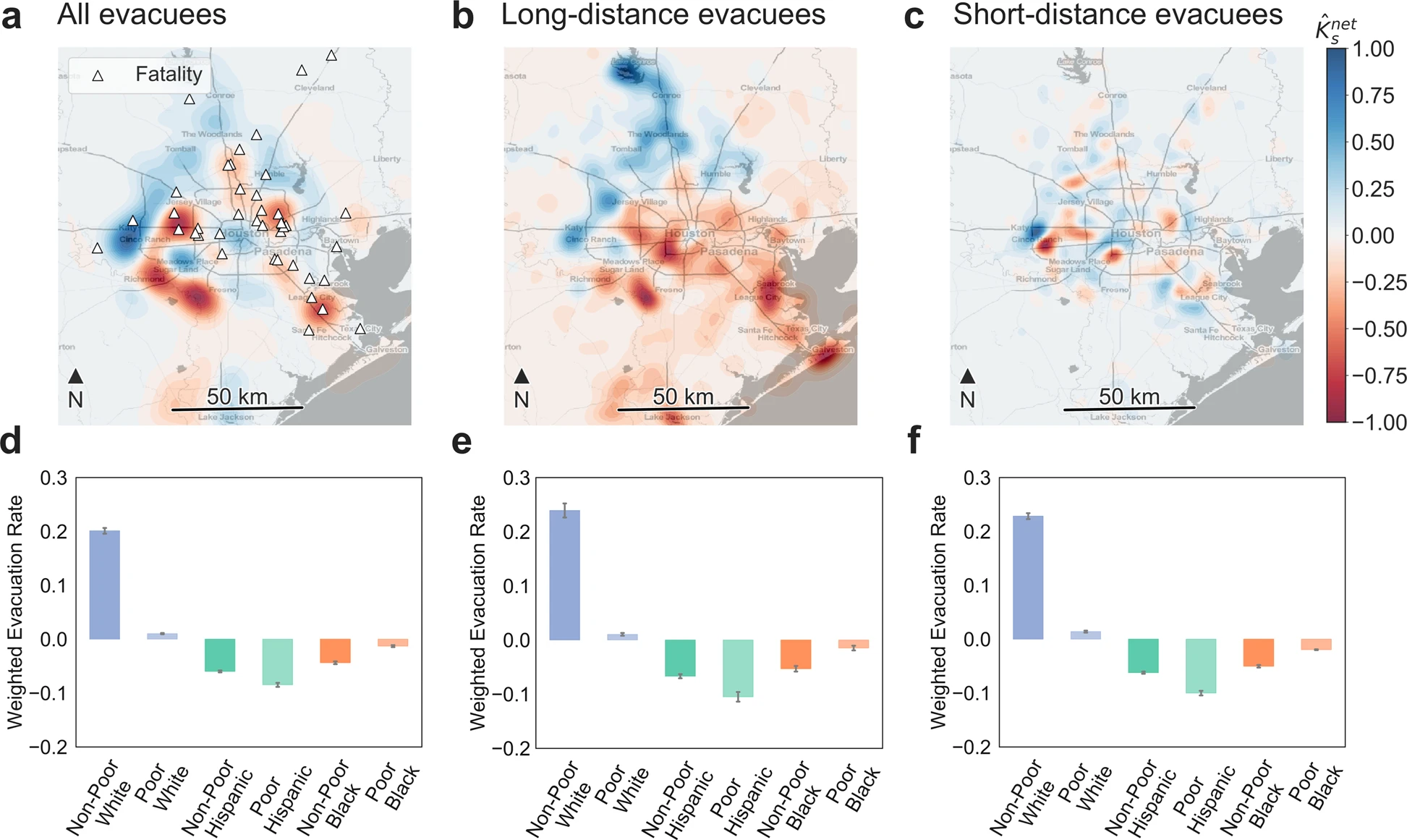 Despite that universality, not all people are equally affected by evacuation: Deng et al [11] using LBS data found that race and wealth strongly impact evacuation patterns, with disadvantaged minorities being less likely to evacuate during hurricane Harvey.