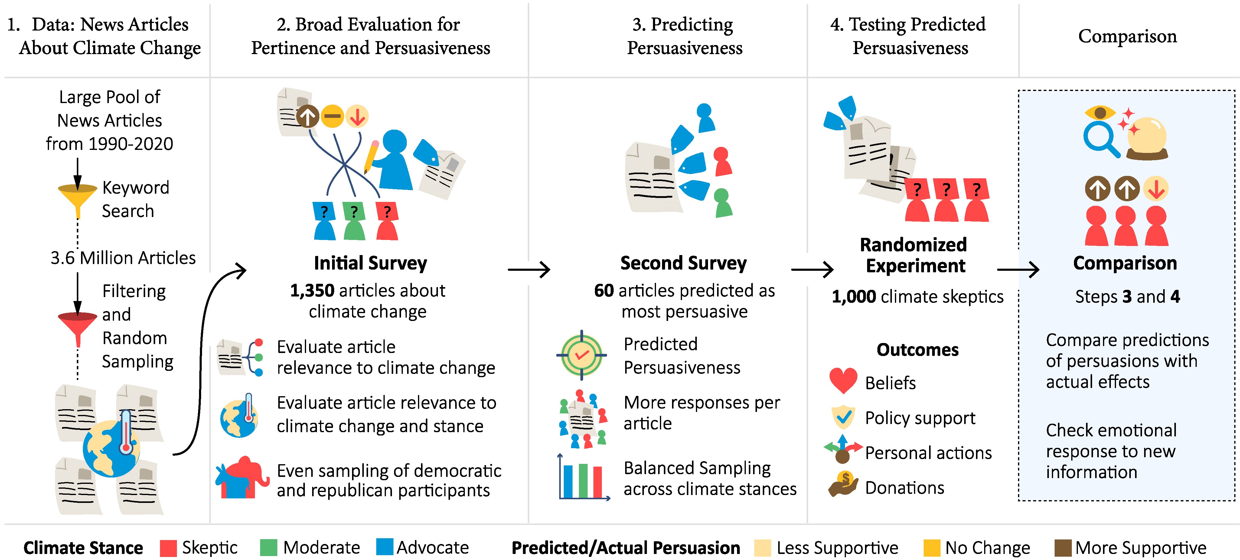 In a very recent paper, [6], they studied how to persuade climate skeptics using surveys. They found that exposure to factual climate change news increase concern about climate change, challenging the belief that they are unmovable.
