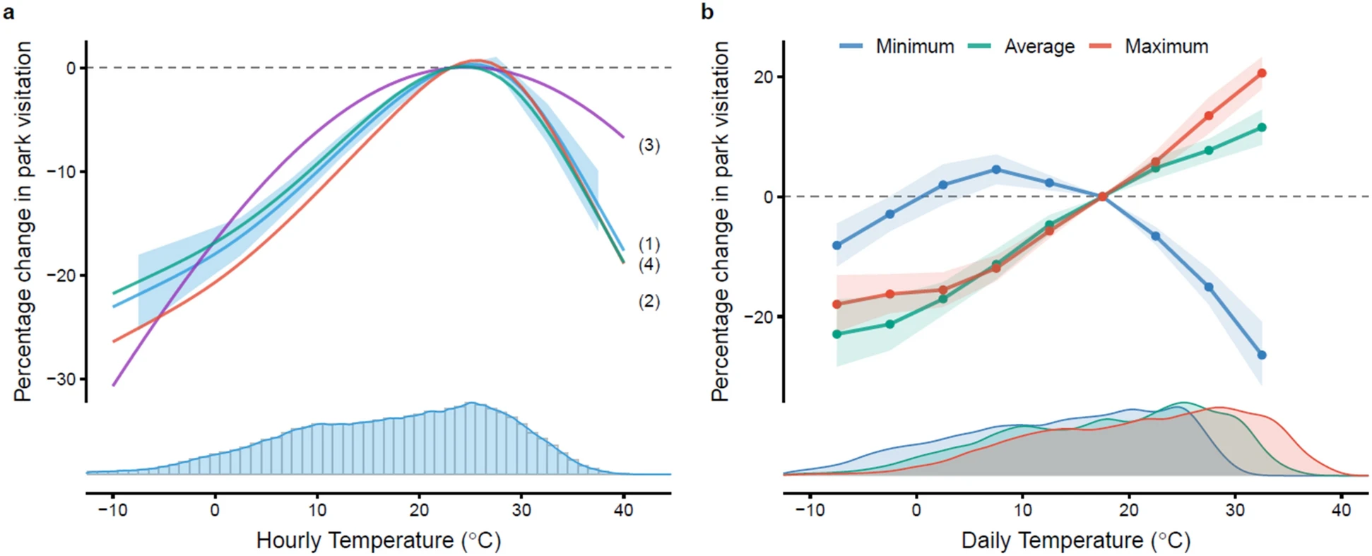 People change their behavior to adapt for climate change. For example, [7] found that outdoor activity is severly reduced by extreme heat, and it is delayed in time within the day