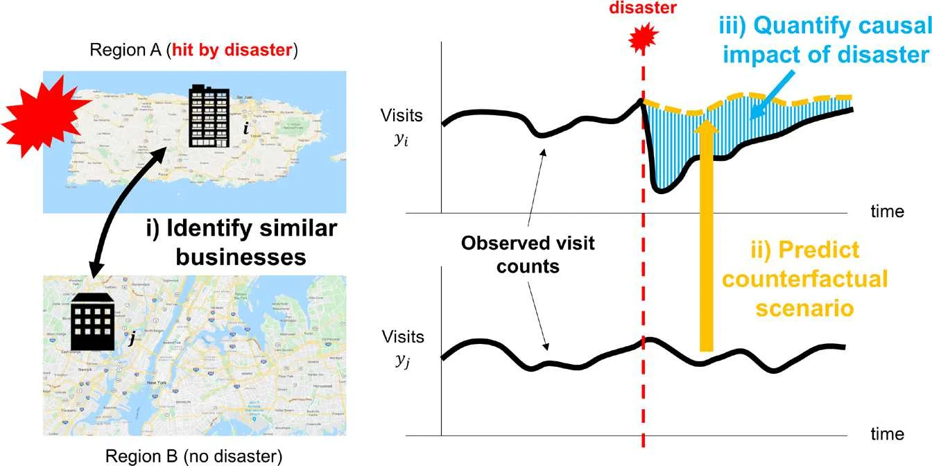 Example: use causal techniques to estimate the impact of disasters on business using human mobility data [12]