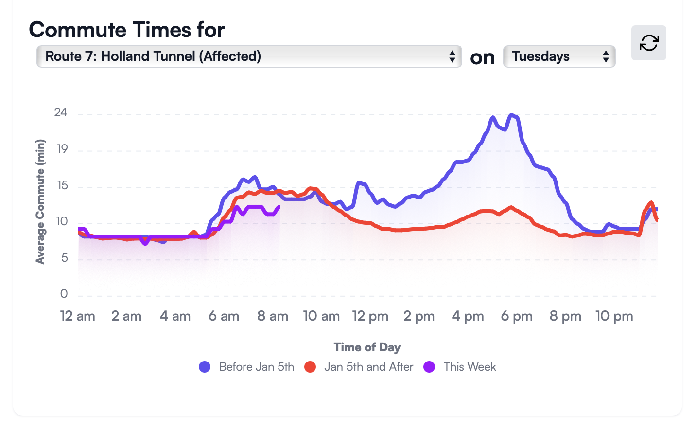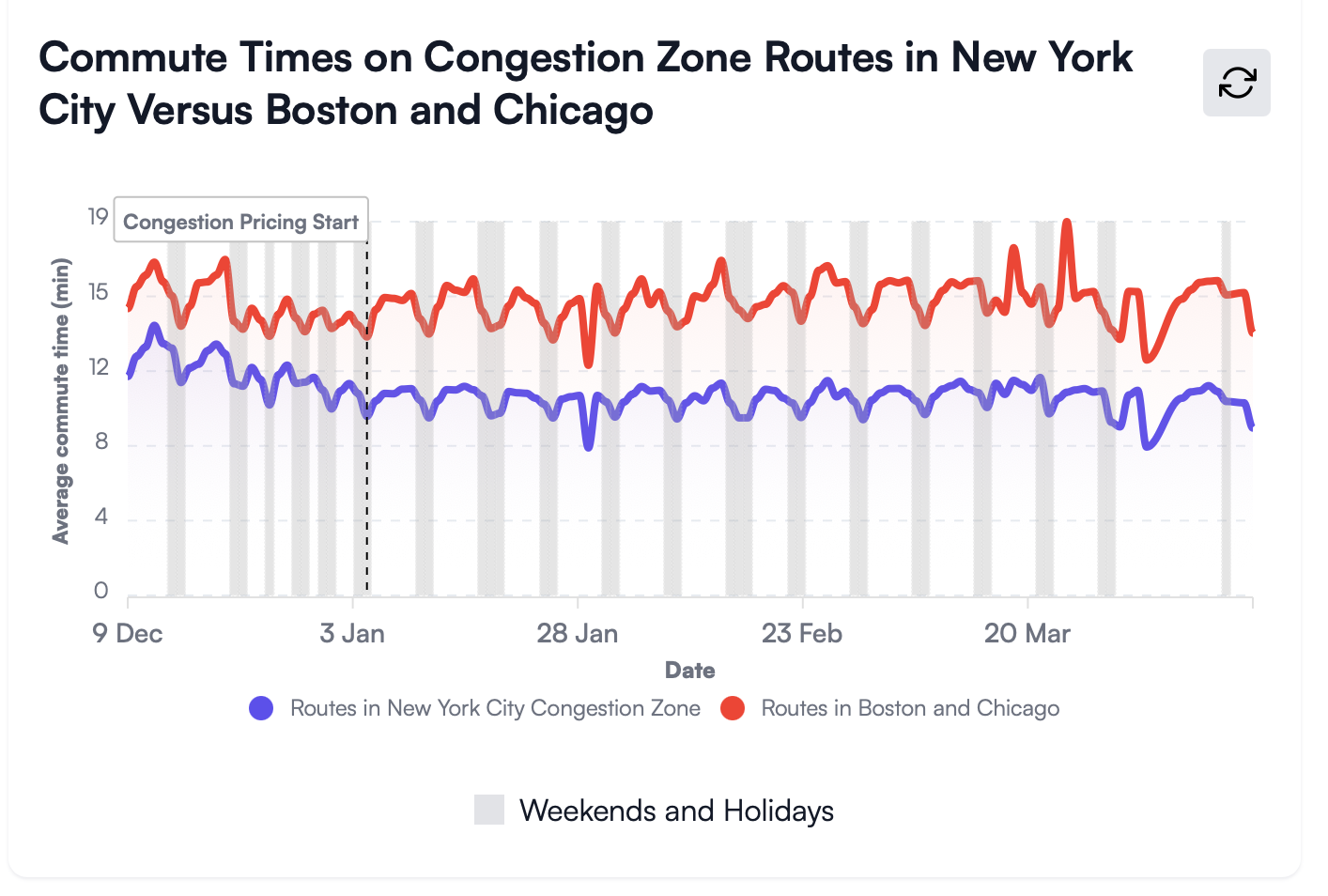 First initial data: https://www.congestion-pricing-tracker.com (from a student in Northeastern!). Using Google Maps, commuting times for different routes in and out of Manhattan.