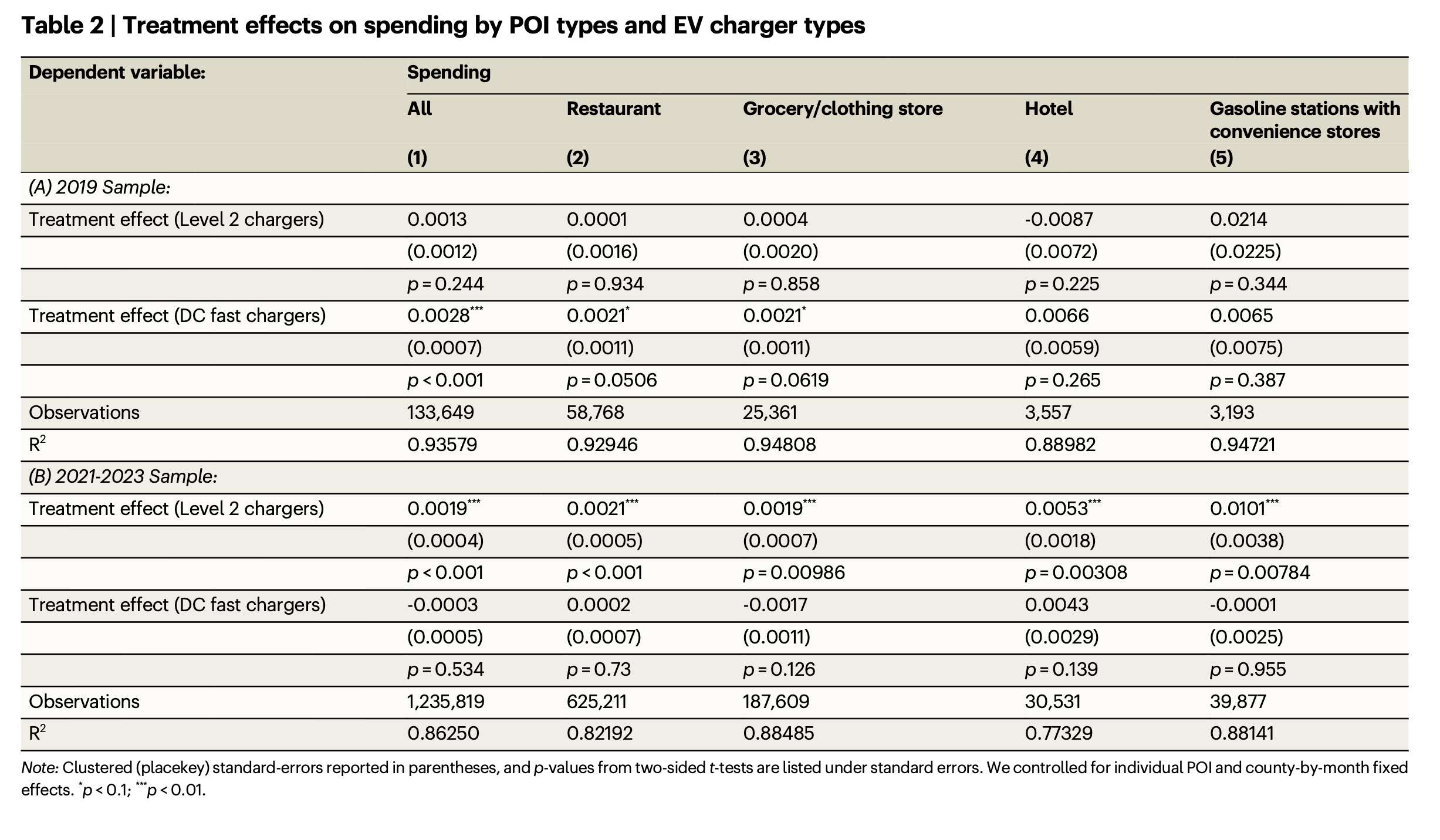 They found that adding a new charging port resulted in a 0.21% increase in customer count and a 0.25% in spending in 2019 and 0.14% and 0.16% in 2021-2023.