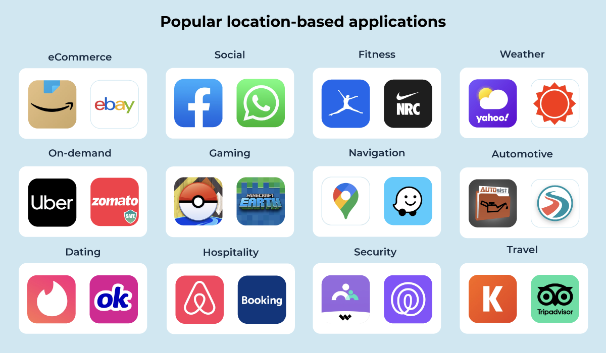 Location-based Services data come from apps that use users’ geolocation to provide a service. For example, maps, place recommendations, weather, ride-sharing, and shopping apps collect users’ locations.