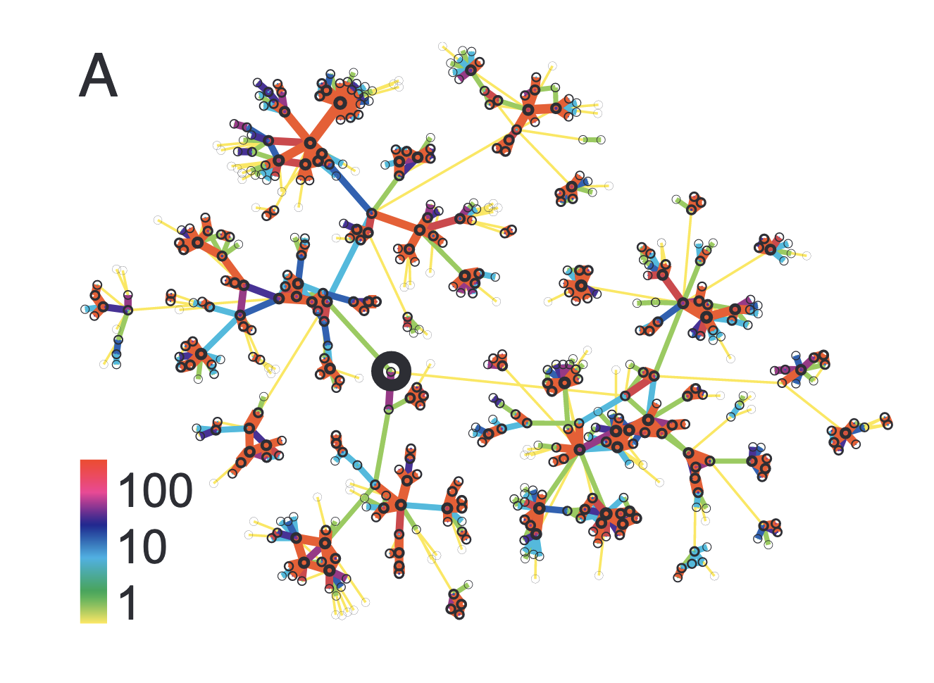 We can reconstruct an individual mobility from the raw data by ordering them in time. Note that each point has an accuracy (radius) around it.