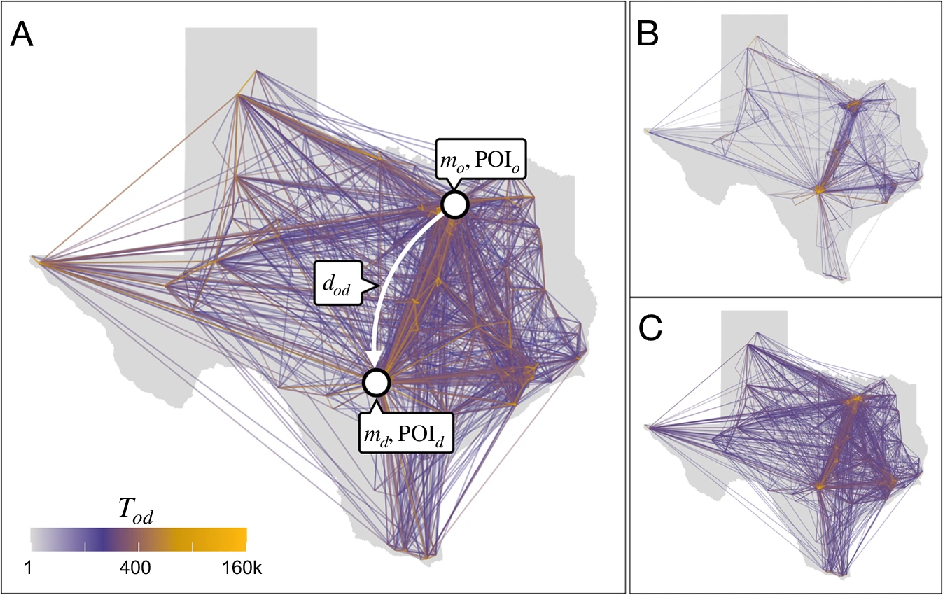 Abstract: Modeling human mobility is critical to address questions in urban planning, sustainability, public health, and economic development. However, our understanding and ability to model flows between urban areas are still incomplete. At one end of the modeling spectrum we have gravity models, which are easy to interpret but provide modestly accurate predictions of flows. At the other end, we have machine learning models, with tens of features and thousands of parameters, which predict mobility more accurately than gravity models but do not provide clear insights on human behavior. Here, we show that simple machine-learned, closed-form models of mobility can predict mobility flows as accurately as complex machine learning models, and extrapolate better. Moreover, these models are simple and gravity-like, and can be interpreted similarly to standard gravity models. These models work for different datasets and at different scales, suggesting that they may capture the fundamental universal features of human mobility.