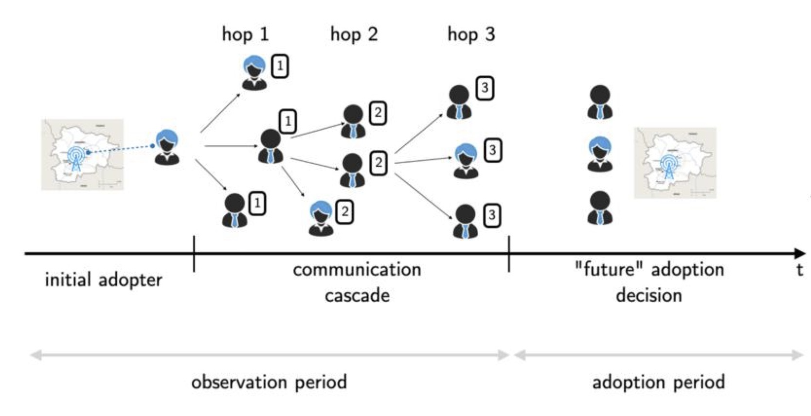 Abstract: We use high-resolution mobile phone data with geolocation information and propose a novel technical framework to study how social influence propagates within a phone communication network and affects the offline decision to attend a performance event. Our fine-grained data are based on the universe of phone calls made in a European country between January and July 2016. We isolate social influence from observed and latent homophily by taking advantage of the rich spatial-temporal information and the social interactions available from the longitudinal behavioral data. We find that influence stemming from phone communication is significant and persists up to four degrees of separation in the communication network. Building on this finding, we introduce a new “influence” centrality measure that captures the empirical pattern of influence decay over successive connections. A validation test shows that the average influence centrality of the adopters at the beginning of each observational period can strongly predict the number of eventual adopters and has a stronger predictive power than other prevailing centrality measures such as the eigenvector centrality and state-of-the-art measures such as diffusion centrality. Our centrality measure can be used to improve optimal seeding strategies in contexts with influence over phone calls, such as targeted or viral marketing campaigns. Finally, we quantitatively demonstrate how raising the communication probability over each connection, as well as the number of initial seeds, can significantly amplify the expected adoption in the network and raise net revenue after taking into account the cost of these interventions. History: Sam Ransbotham, Senior Editor; Yan Huang, Associate Editor. Funding: Y. Leng acknowledges the support provided by the National Science Foundation [Grant IIS-2153468]. E. Moro acknowledges the support provided by the National Science Foundation [Grant 2218748]. Supplemental Material: The online appendices are available at https://doi.org/10.1287/isre.2023.1231.